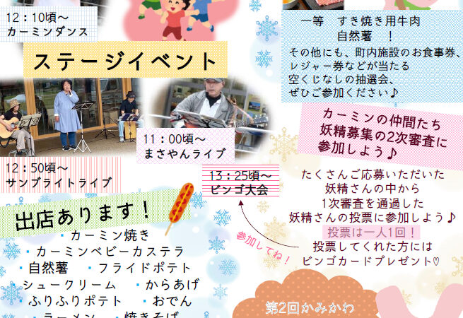 12月7日に、神河町ふるさと広場にて「カーミンのWinter Fes」が開催されます。