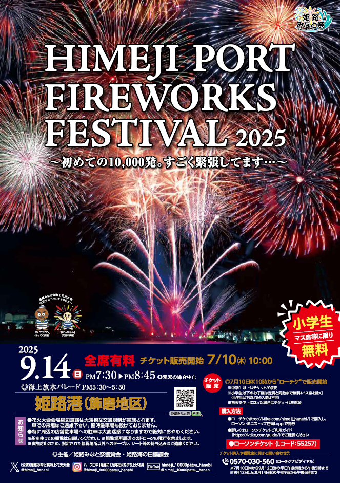 9月14日に、姫路港 (飾磨地区)にて「令和7年度 姫路みなと祭海上花火大会」が開催されます。