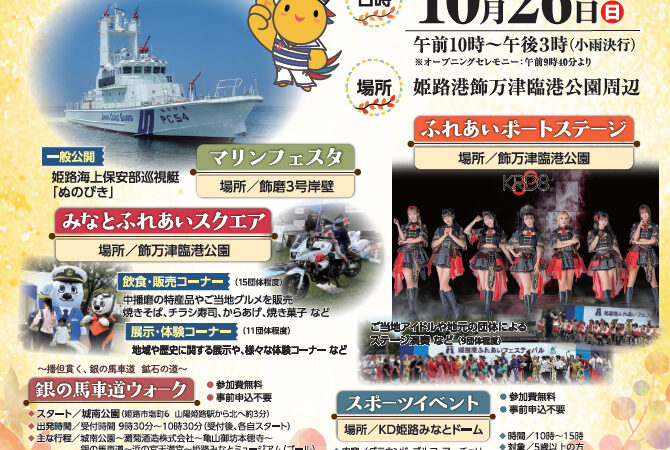 10月26日に、飾万津臨港公園周辺にて「姫路港ふれあいフェスティバル」が開催されます。