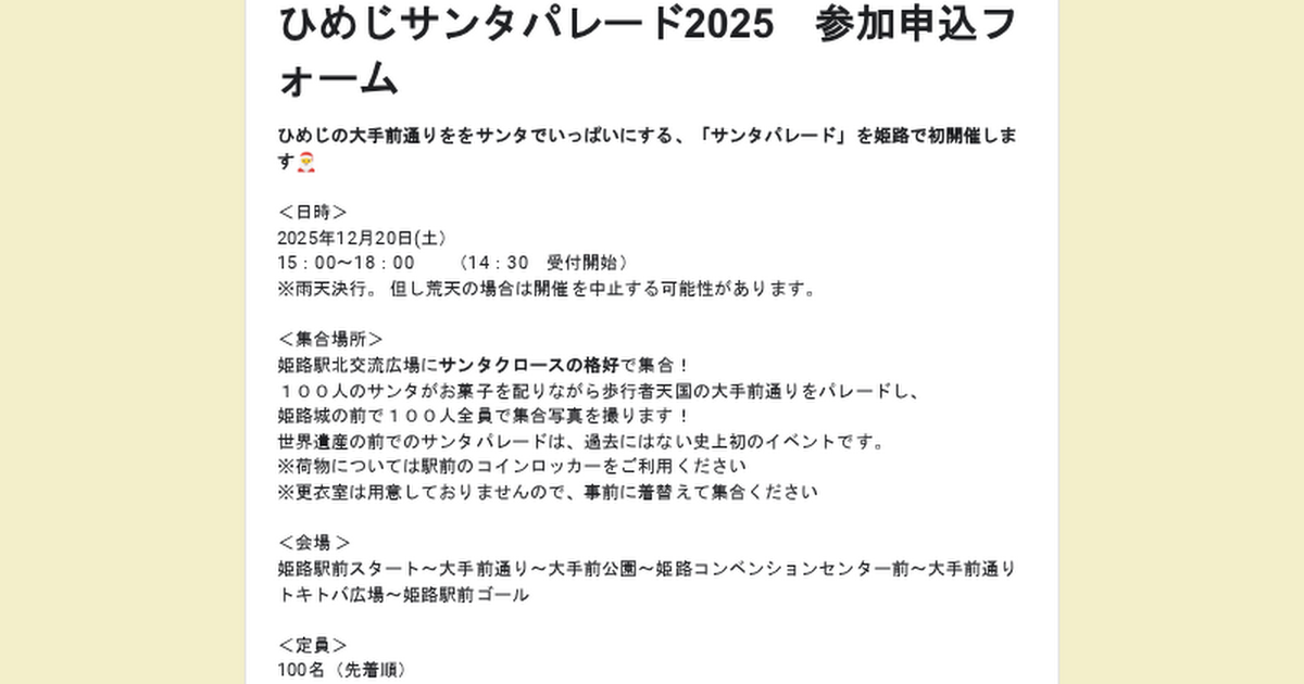 ひめじサンタパレード2025 参加申込フォーム