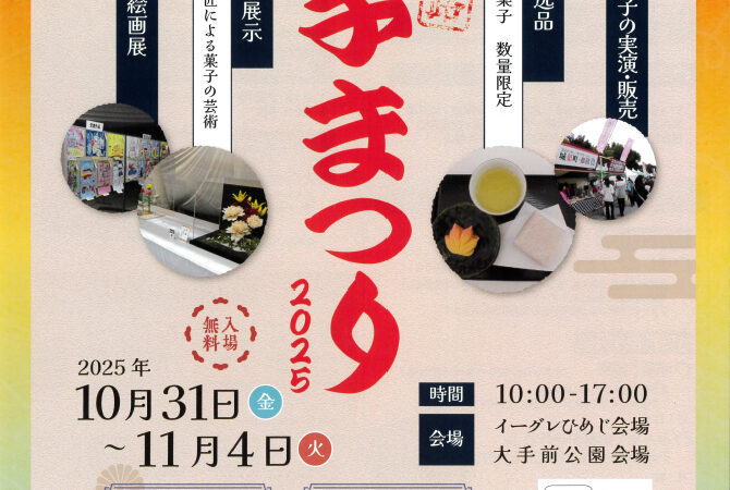 10月31日~11月4日の期間、大手前公園ほかにて「姫路菓子まつり2025」が開催されます。