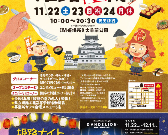 11月22日・23日・24日の3日間、大手前公園にて「姫路食博2025」が開催されます。