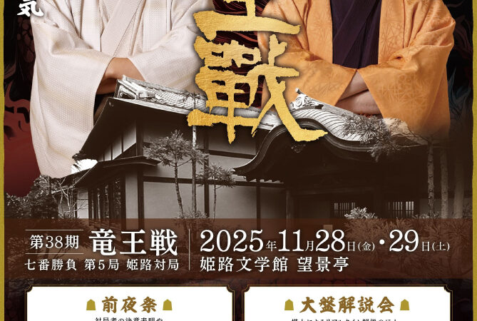 11月28日・29日に、姫路文学館 望景亭にて「第38期竜王戦」が開催されます。