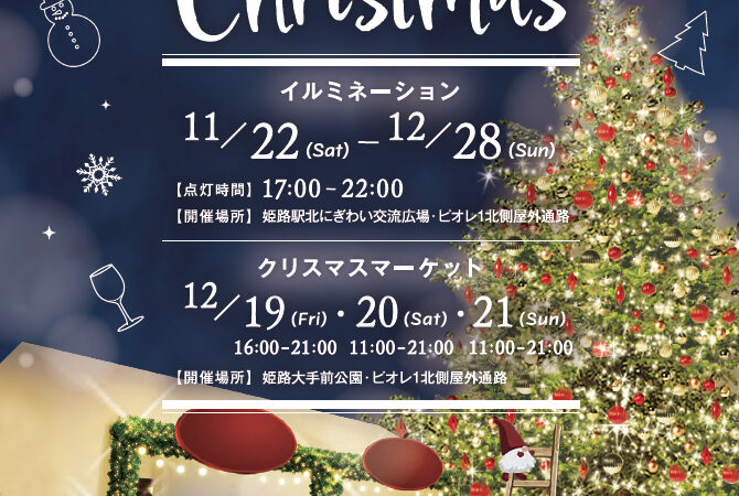 今年も大切なひとと特別なひとときを姫路で過ごしていただきたいという願いを込めて、「Hitotoki Christmas (ひとときクリスマス)」と題し、イルミネーションに加えてクリスマスマーケットが開催されます。