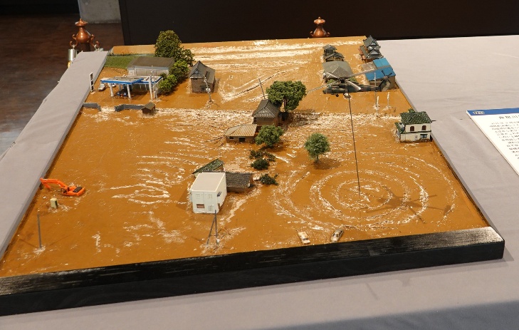 - 水害を克明に再現した「鬼怒川堤防決壊ジオラマ」