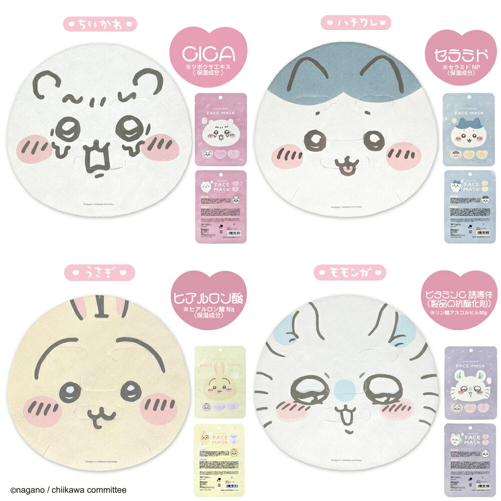 粧美堂株式会社から、イラストレーター ナガノさんによる人気漫画「ちいかわ」のフェイスマスクが2023年8月下旬より順次発売されます。