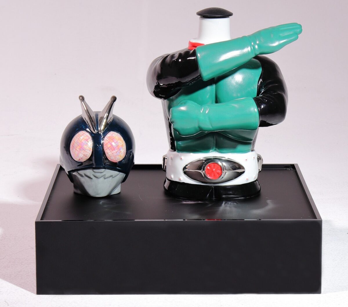陶器で「仮面ライダー旧1号」の姿を再現したスペシャルボトル。