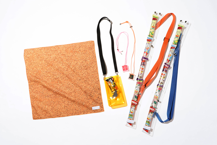 「ベビースター」の麺が一面にプリントされたバンダナ。大判なので、何かと使えちゃうスグレモノ。よくよく見ると…「駄菓子じゃぱん」の麺文字が!家族と友達と、みんなで探してみてください!
