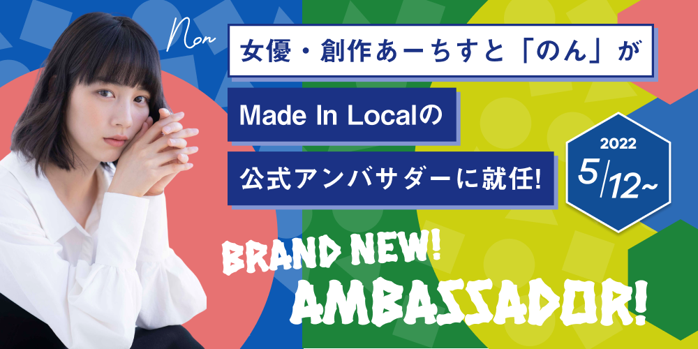 サイトの立ち上げ構想から1周年を記念して、“のん”さんには、今後「Made In Local」のさらなる認知度拡大のため、公式アンバサダーとして地方創生の重要性を発信していただきたいと思います。“のん”さん自身も兵庫県神崎郡という地方の出身であり、兵庫県のみならず地方のPR活動などを積極的に行われていることからこの度公式アンバサダーにご就任いただくこととなりました。