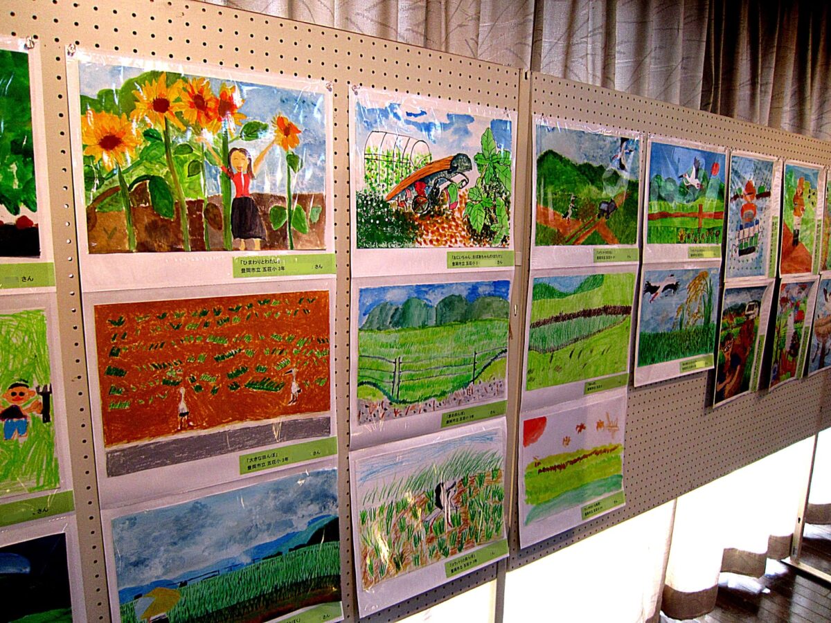 身近な「農」を見つけようという課題で、兵庫県内の小学3年生に作品を募った作品の中から但馬地区の小学校の作品が展示されています。