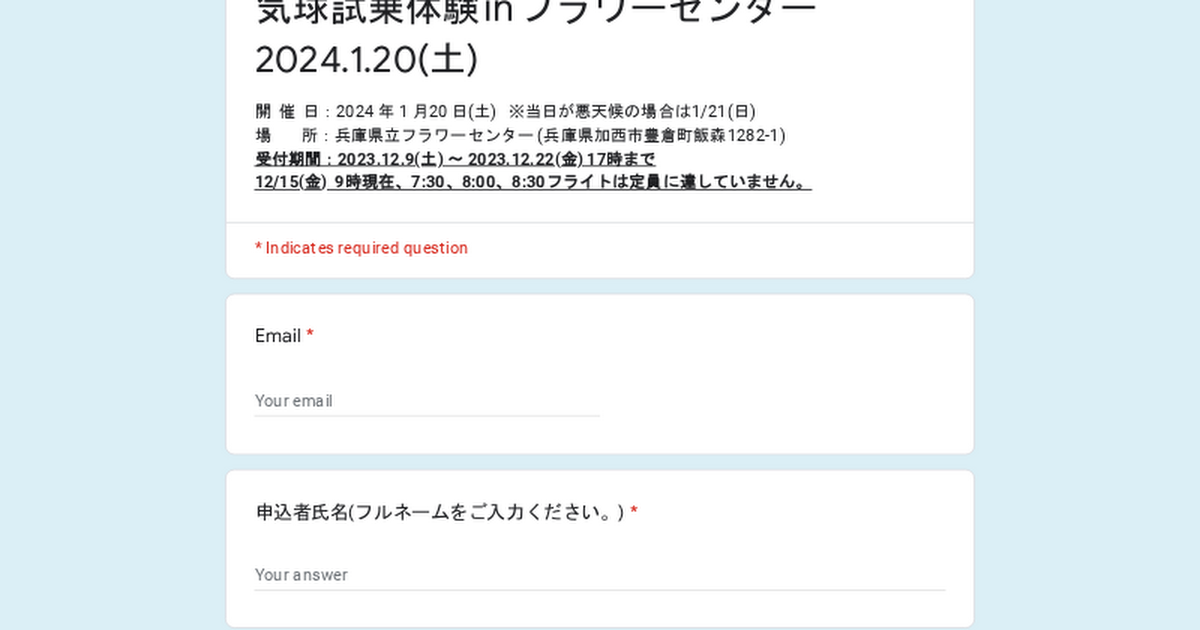 兵庫県立フラワーセンター(加西市)にて気球試乗体験が開催。12月9日(土)より申込が開始されます。