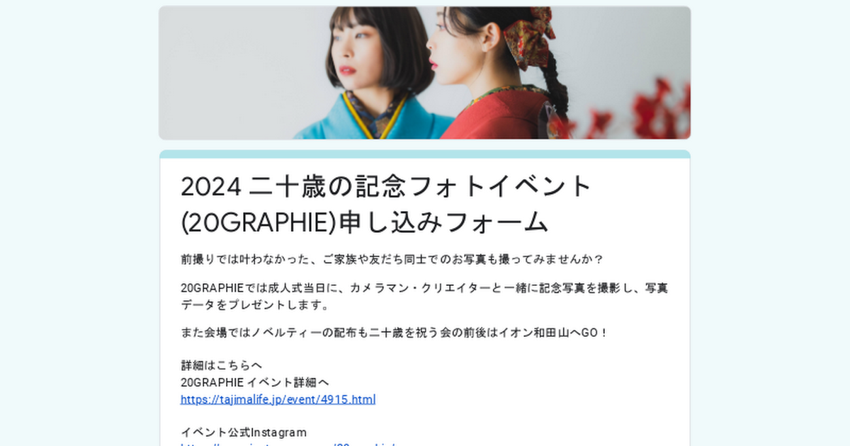 2024 二十歳の記念フォトイベント(20GRAPHIE)申し込みフォーム