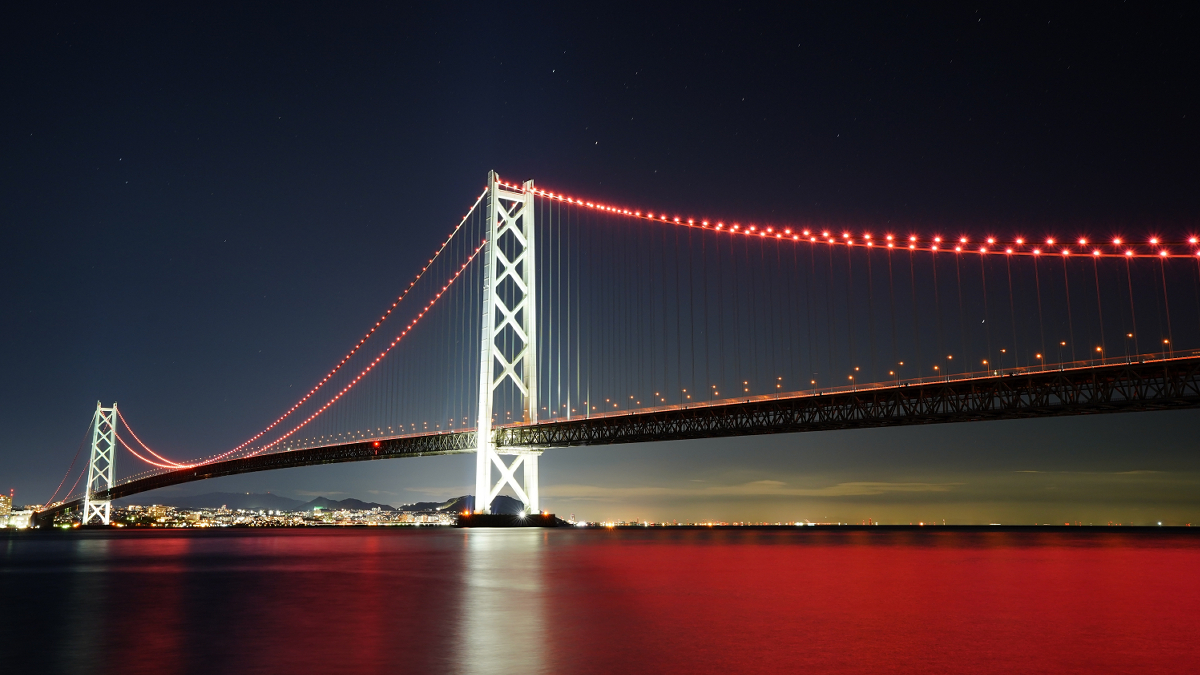 ヴィッセル神戸のJ1リーグ連覇を祝し、明石海峡大橋の特別ライトアップは行われます。ヴィッセルカラーに染まる明石海峡大橋にご注目ください。
