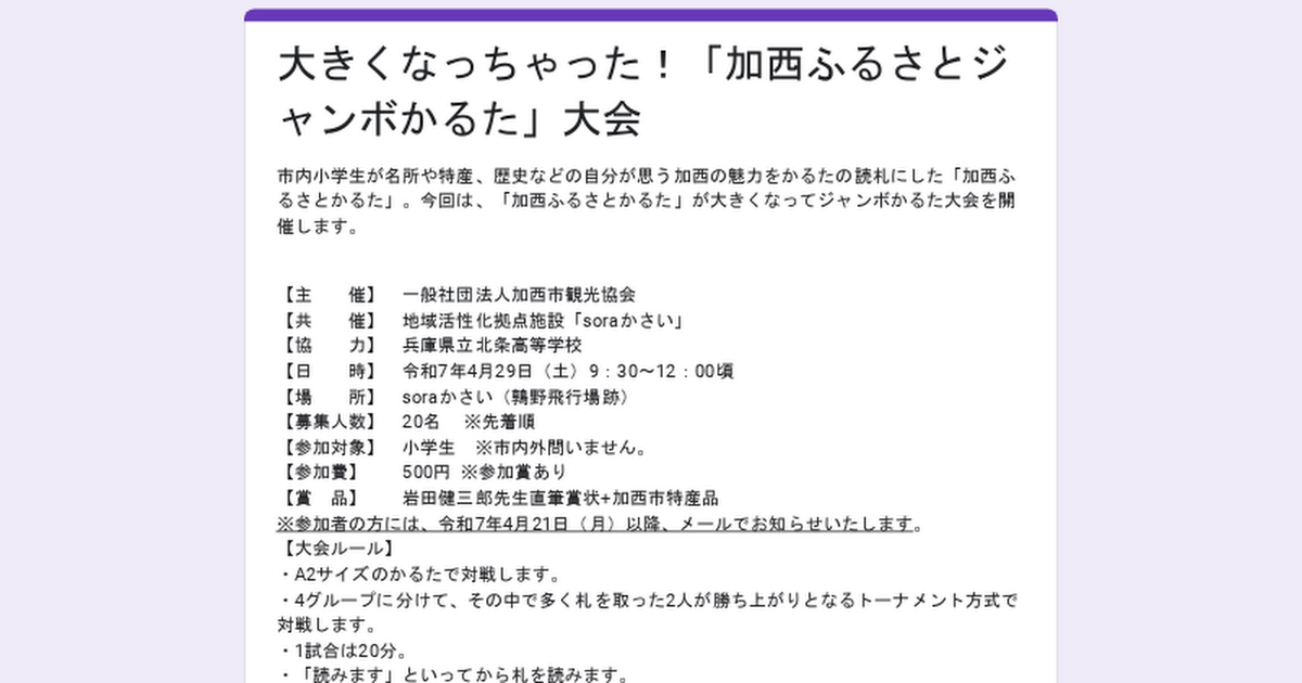 「大きくなっちゃった!「加西ふるさとジャンボかるた大会」が開催│加西市」についての追加情報、感想などをコメントまでお寄せください。