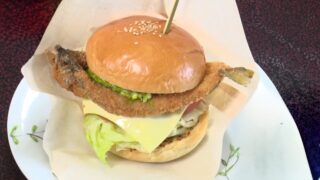 昼食は、飛び鮎の名勝・闘竜灘へ。ご当地名物「鮎バーガー」にかぶりつけば、サイクリングで高まった食欲をしっかり満たしてくれます。