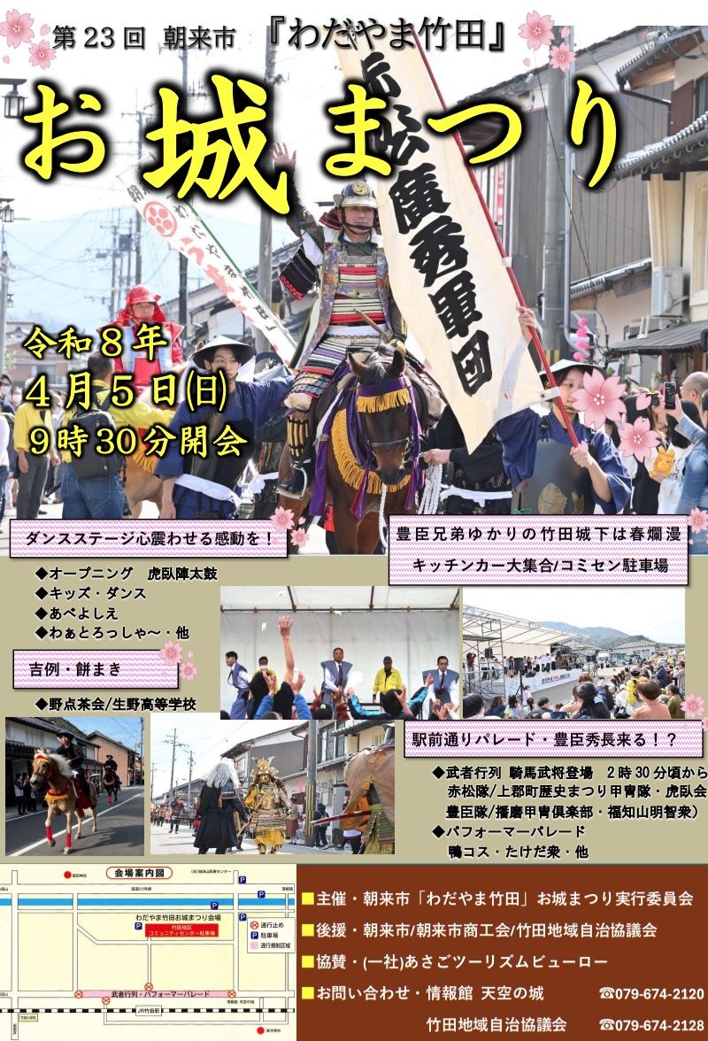 兵庫県朝来市にて、春の恒例行事「わだやま竹田 お城まつり」が令和8年4月5日に開催されます。