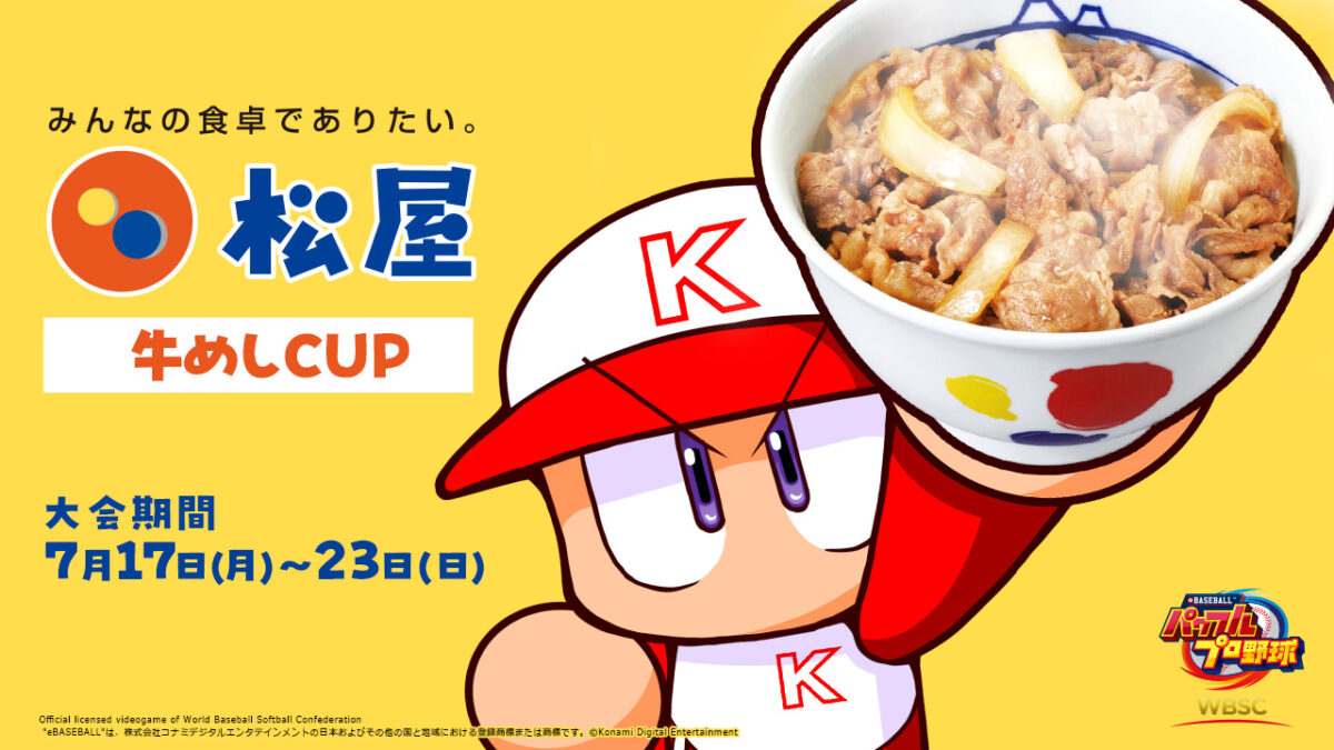 このたび松屋フーズは、野球競技である世界野球ソフトボール連盟(WBSC)公式の野球ゲーム『WBSC eBASEBALL™パワフルプロ野球』において、2023年7月17日(月)より「牛めしCUP」を開催。
