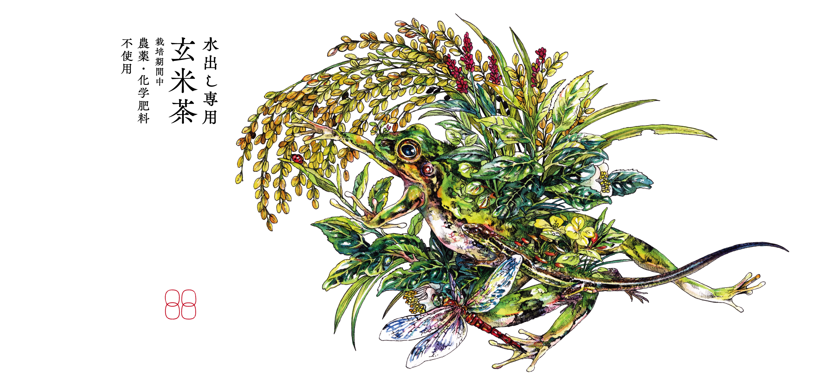玄米茶専門ブランド「88」は、無農薬・化学肥料不使用(※米は植え付けの2年以上前から)で育てられている、大粒な性質をもつ酒米・山田錦の、通常酒造りに使われにくい小さなサイズの酒米を活用します。