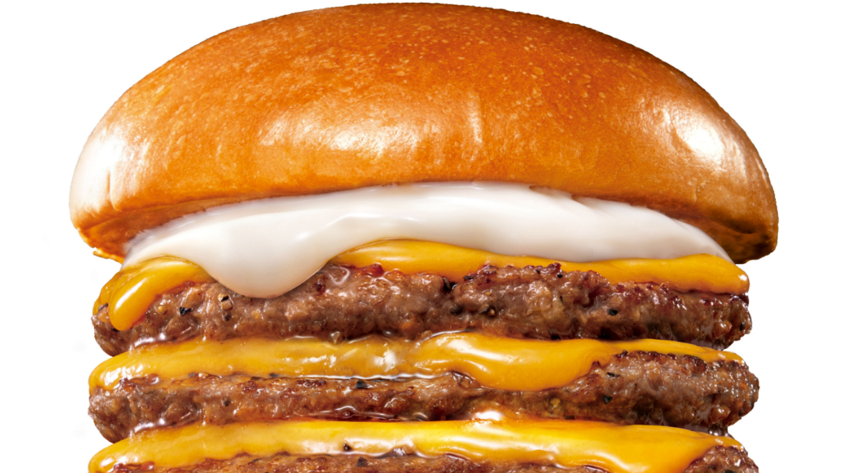 | 商品概要 | 「牛カルビバーガー」のハンバーグパティを3枚重ね、牛カルビ肉を約2倍に増量し、レタス、マヨネーズ、からしマヨとともにふっくらなめらかな食感のバンズで挟みました |