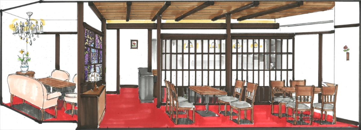 店内も「大正ロマン」をコンセプトにした、懐かしくて新しい、心落ち着く和洋折衷の空間となるようです。