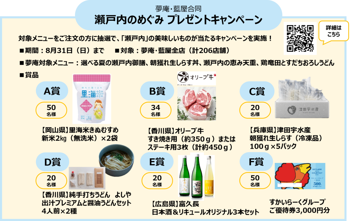 「【夢庵】『夏のおいしい!瀬戸内フェア』開催!“生しらす・鱧(はも)・牡蠣”などの瀬戸内食材が集結」についての追加情報、感想などをコメントまでお寄せください。