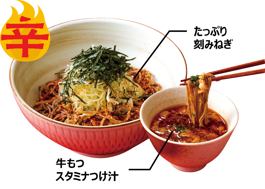 旨辛・牛もつつけそば【麺大盛(+半玉)無料】