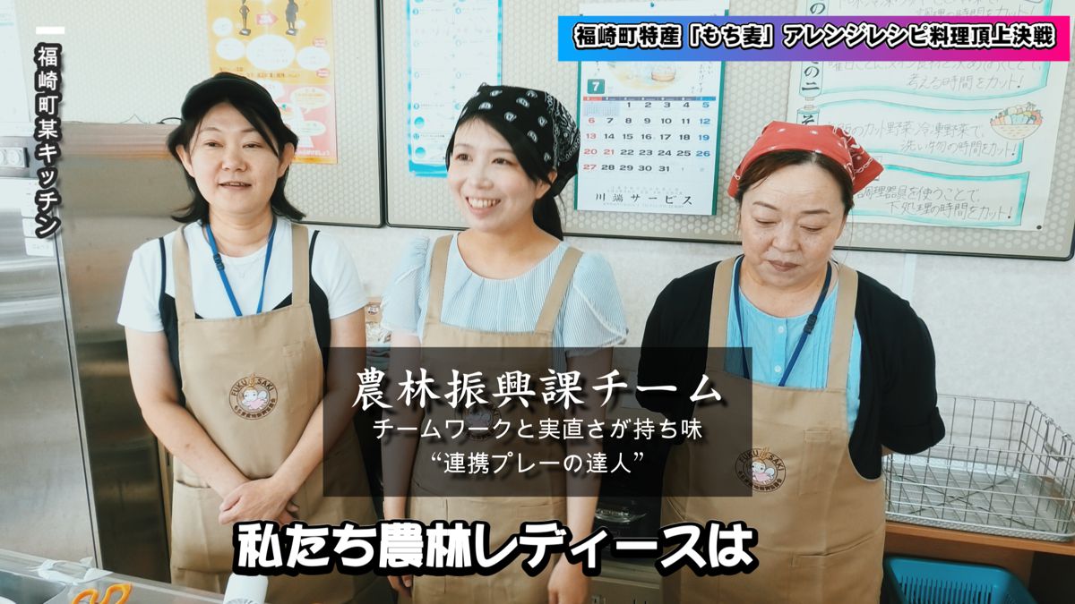 出場者は、観光やイベントを担当する地域振興課と、農業や林業の振興に取り組む農林振興課という、ふだんはそれぞれ異なる分野で福崎町の「もち麦」を支える二つの部署。