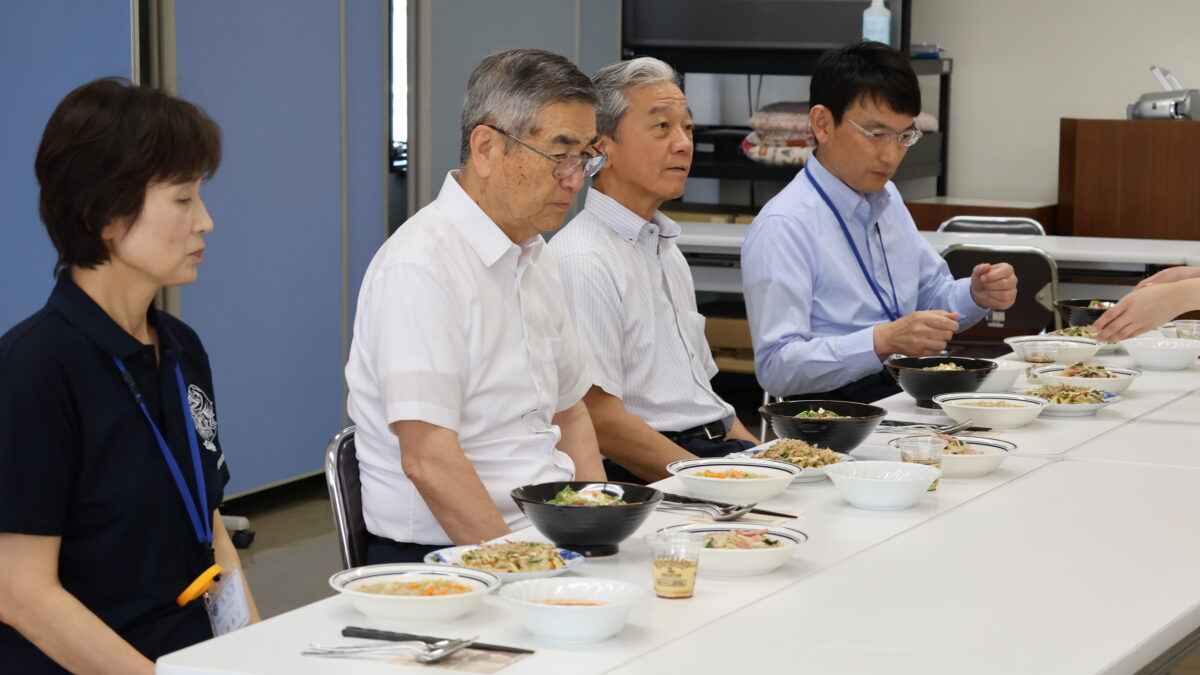 完成した料理は、福崎町の町長をはじめとする幹部職員が試食審査。