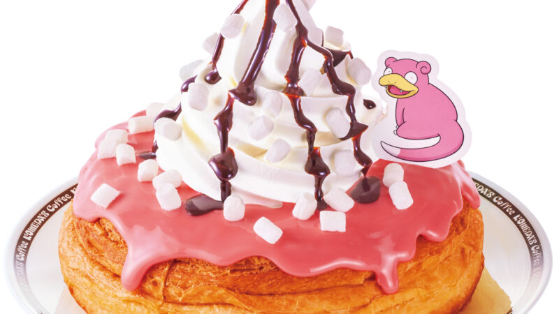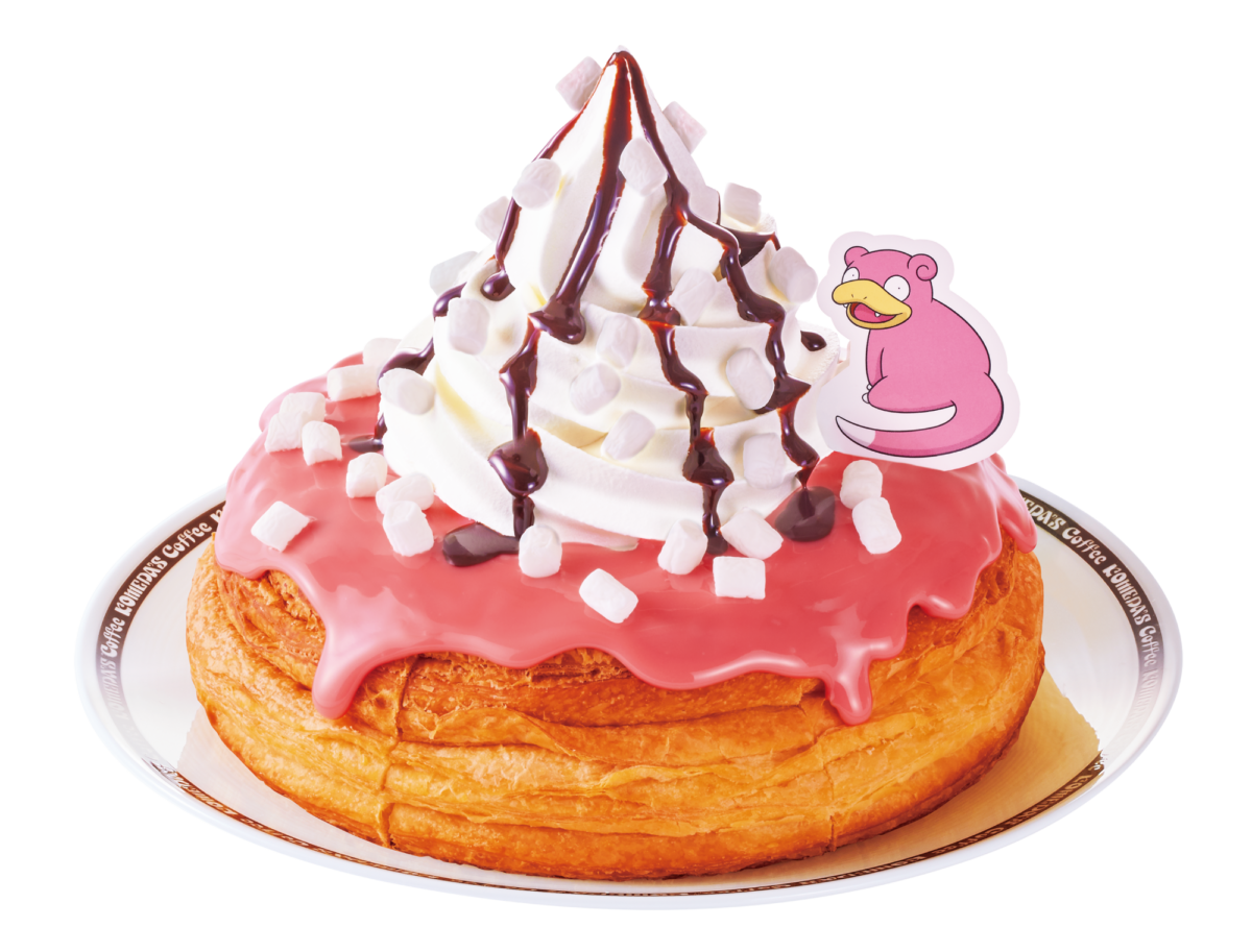 ピンク色のヤドンを、いちごチョコソースで表現した見た目もかわいいシロノワールが登場!あたたかいデニッシュに、とろりとかけたいちごチョコソースは、ひとくち頬ばると甘い香りが口いっぱいに広がり、噛んでいると幸せな気分になる味わいです。ソフトクリームの上にかけたチョコソースが、味わいに奥行きを加え、甘さの変化も楽しんでいただけます。ヤドンのしっぽをイメージしたふわふわのマシュマロもポイントで、見た目も食感も癒し系。ヤドンののんびりした雰囲気にぴったりな、くつろぎのひとときをお楽しみください。