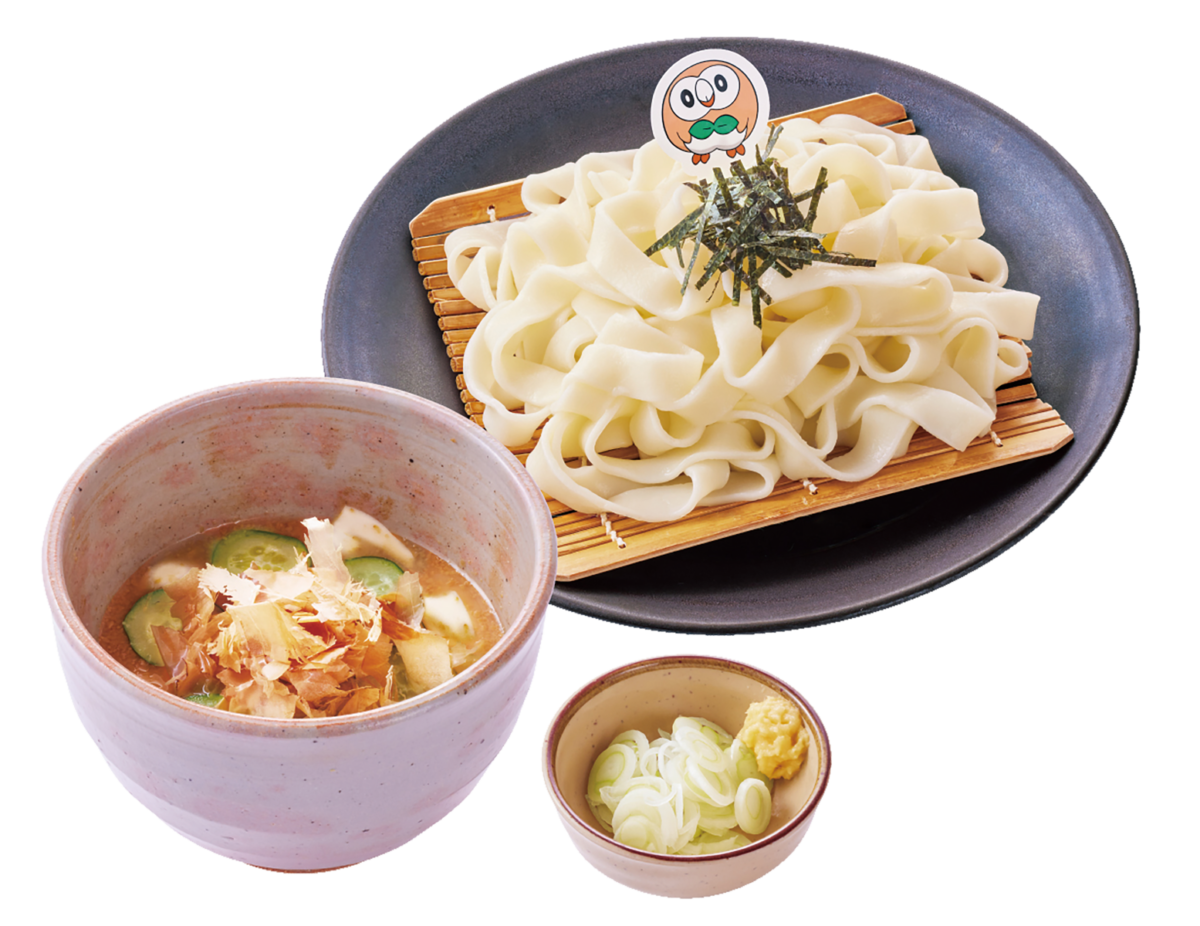 おかげ庵の夏の定番、冷たいきしめんがモクローをイメージした特別メニューに。