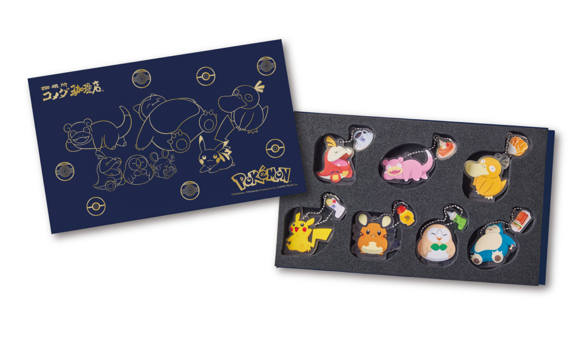 「ヤドンのいちごチョコシロノワール」、「カビゴンのサルサチキンカツパン」、「コダックのマンゴーミルク氷」、「モクローの胡麻だれきしめん」のいずれか1品をご注文で、オリジナルチャーム1個をランダムでプレゼントいたします。全7種類のかわいい「ポケモン」たちのうち、どれがもらえるかは開けてからのお楽しみです。