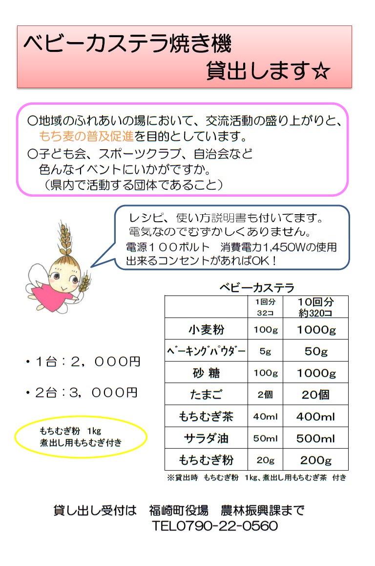 福崎町役場(農林振興課)では、このベビーカステラ焼き機の貸し出しも行っています。