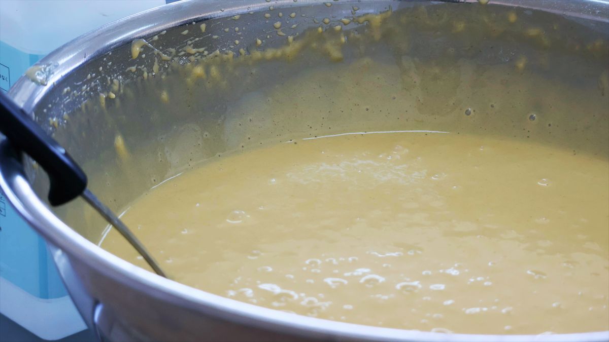 調理場に一歩足を踏み入れると、香ばしく甘〜い香りが鼻をくすぐります。「もちむぎベビーカステラ」が特別なのは、そのこだわりの素材選びにありました。