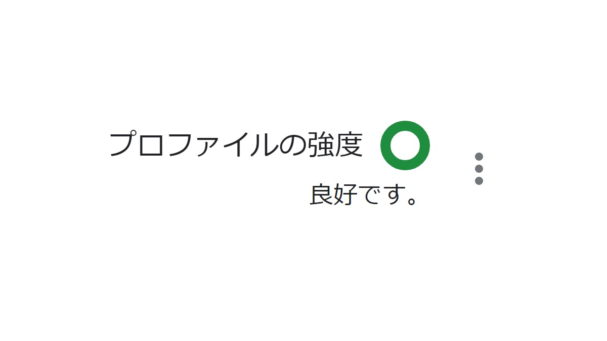 Googleアカウントによっては「プロファイルの強度」が表示されない場合もあるようで、その場合はビジネスプロフィール部分に「不足している情報を追加」という項目の有無を確認してもいいでしょう。