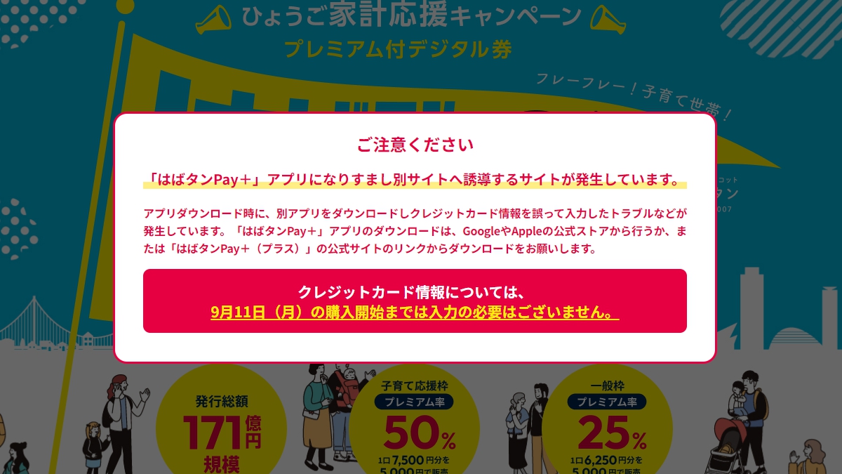 兵庫県在住者であれば利用可能なプレミアム電子券「はばタンPay+」。