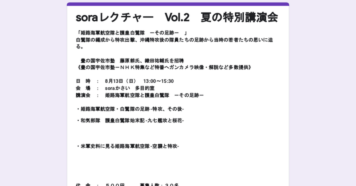 soraレクチャー Vol.2 夏の特別講演会