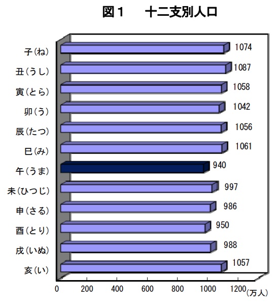 実は、十二支別の人口で見ると、午年は一番人数が少ないんです(図1参照)。一体なぜでしょうか……? その答えは、あの「伝説」にありました。
