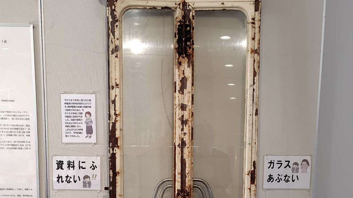 車両同士をつなぐ場所に取り付けられていたこの扉は、西宮市在住の小笠原裕一さんから寄贈され、2026年3月から常設展示室で一般公開が始まっています。