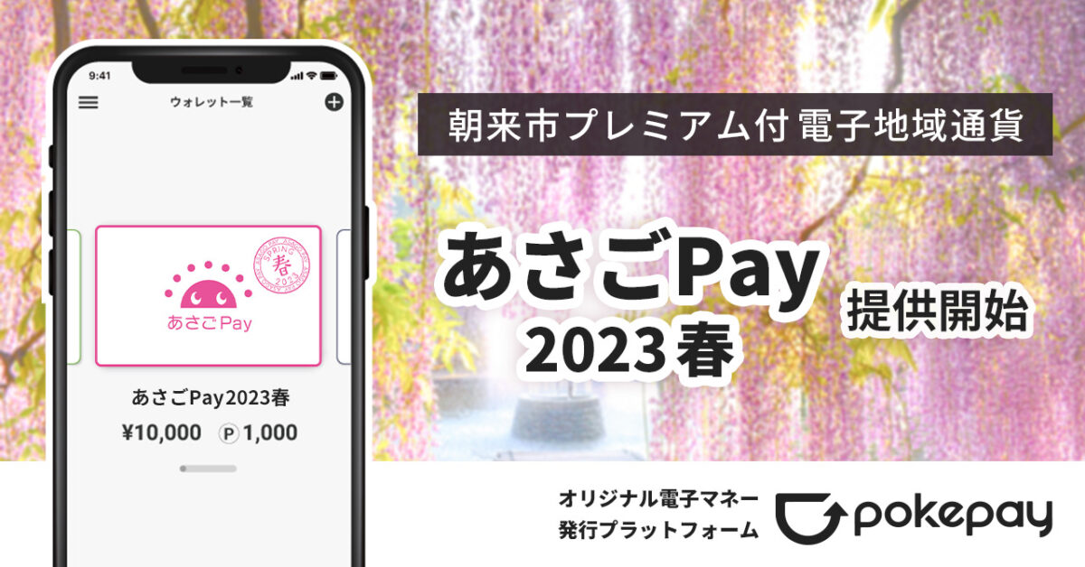 株式会社ポケットチェンジが提供するオリジナル電子マネー発行プラットフォーム「Pokepay(ポケペイ)」を活用した電子地域通貨「あさごPay2023春」が、2023年4月14日(金)から提供開始しました。