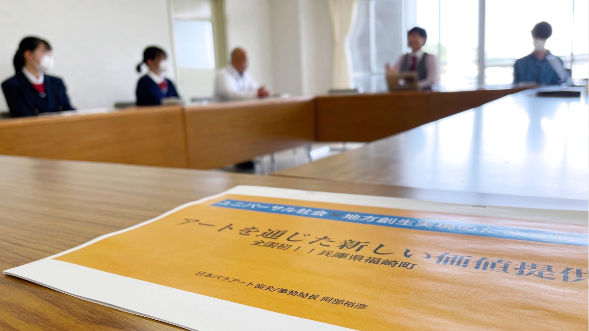 福崎町、関西福祉大学、一社ART FUNKで進める「共生のまちづくり」の連携事業の一環として、5月12日(金)兵庫県立福崎高等学校にて、ユニバーサルアートツーリズム「まちブラ・アート」の生徒向け参加者説明会が開催されました。
