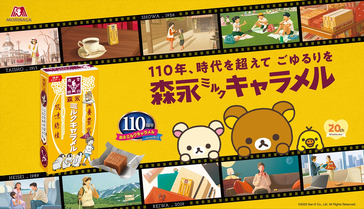 サンエックス株式会社と森永製菓株式会社は、「森永ミルクキャラメル」の発売110周年を記念し、今年で20周年を迎える人気キャラクター「リラックマ」とコラボレーションした特別企画「110年、時代を超えて、ごゆるりを 森永ミルクキャラメル」を、5月22日(月)より開始。