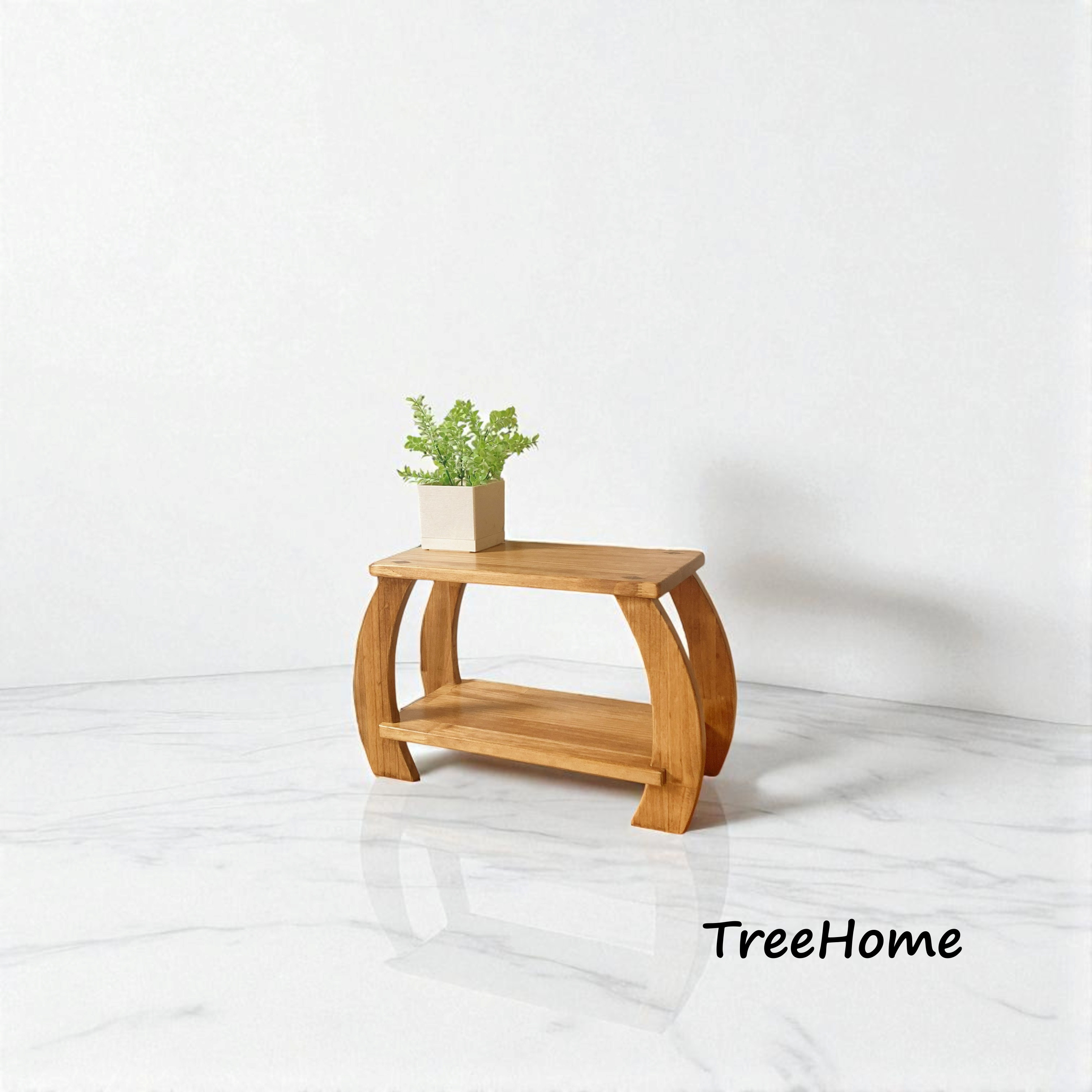 脚を鑿(ミノ)で手彫りした飾り台。艶消しのウォルナットの色味が植物との相性が良い作品です。