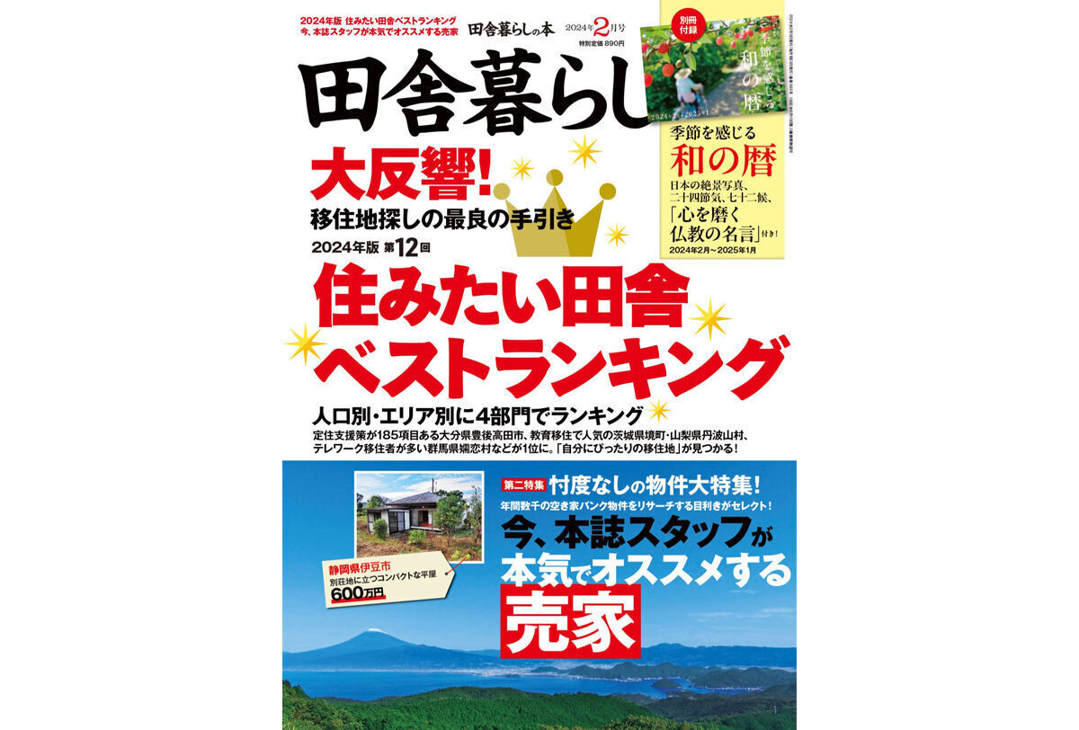 宝島社『田舎暮らしの本』2月号、「2024年版 住みたい田舎ベストランキング」において、朝来市が上位にランクインしました。
