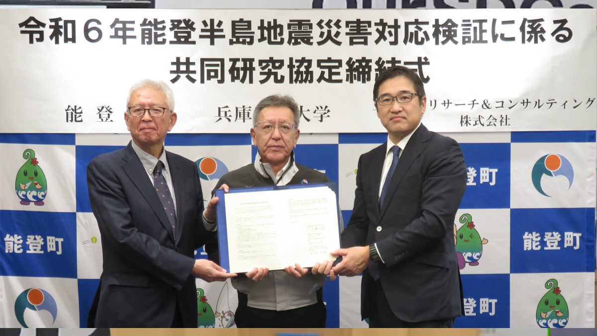 2024年11月8日、三菱UFJリサーチ&コンサルティング株式会社(以下、MURC)は、能登町と兵庫県立大学と共同で、災害対応の検証に関する研究を行うことで合意し、能登町役場にて共同研究協定の締結式が行われました。