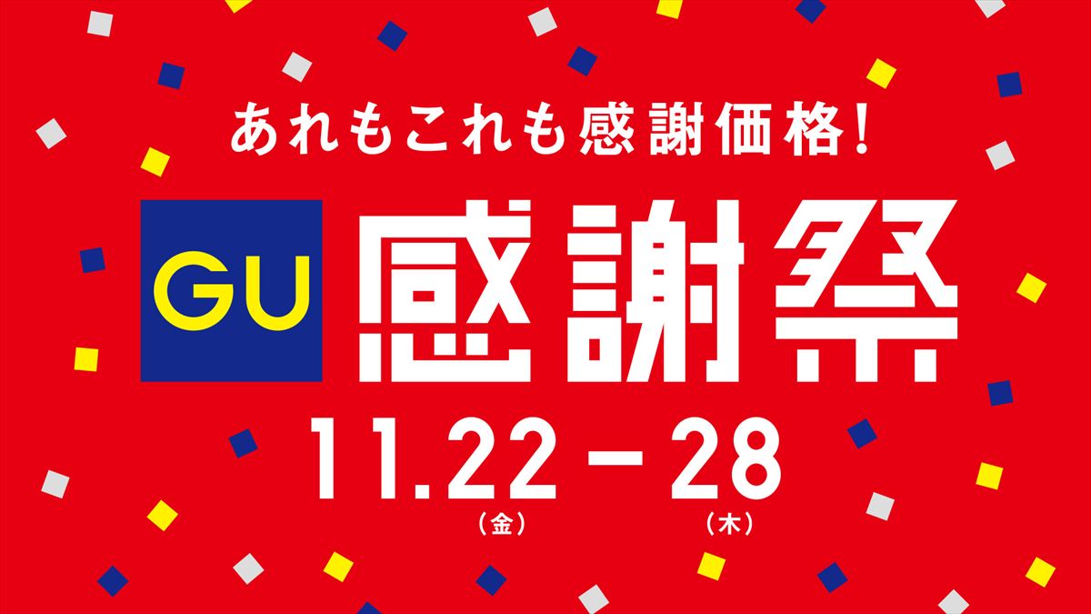 ジーユーにて、11月22日(金)~11月28日(木)の期間、全国のジーユー店舗およびオンラインストアにて「GU感謝祭」が開催されます。