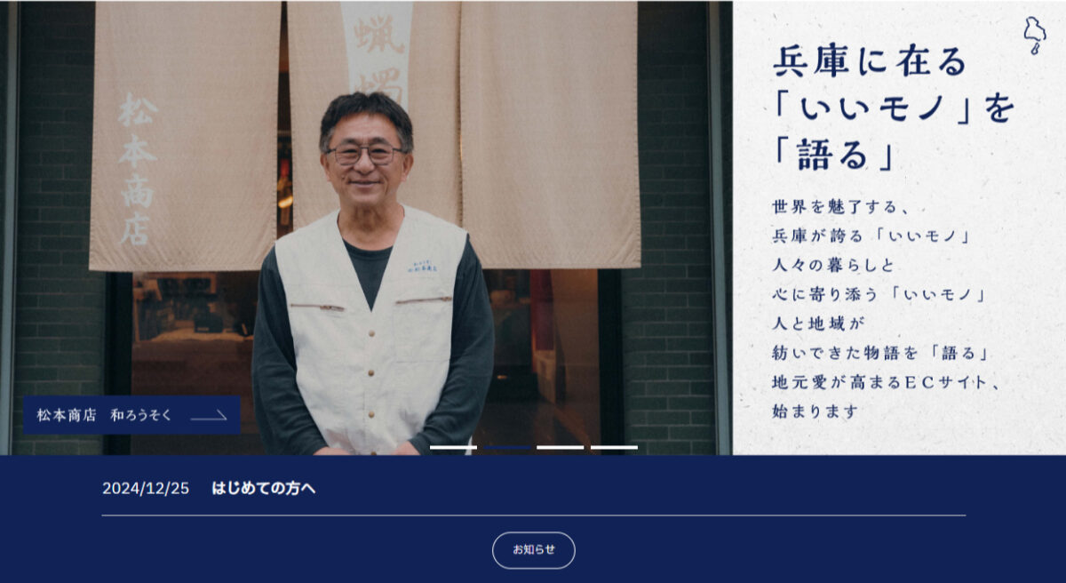 神戸新聞社から、新しいメディア型ECサイト「いいモノがたり」がオープン。世界を魅了する、兵庫が誇る「いいモノ」を幅広く販売するとともに、人と地域が紡いできた物語を「語る」ことで、兵庫の魅力を全国に発信します。