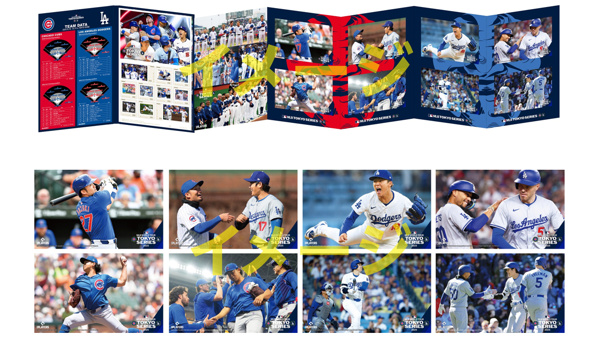 3月18日、19日に東京ドームで行われるロサンゼルス・ドジャースとシカゴ・カブス戦の試合をフレーム切手、プレミアムホルダー、8枚の大型ポストカードに収めたフレーム切手セットとなっています。