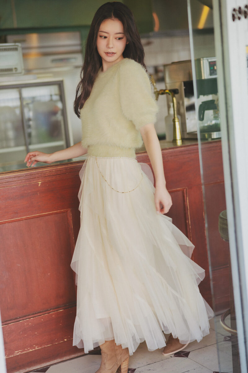 兵庫県出身として知られるなごみさんが、ノスタルジックなムード漂うCOCO DEALの新作を素敵に着こなしています。
