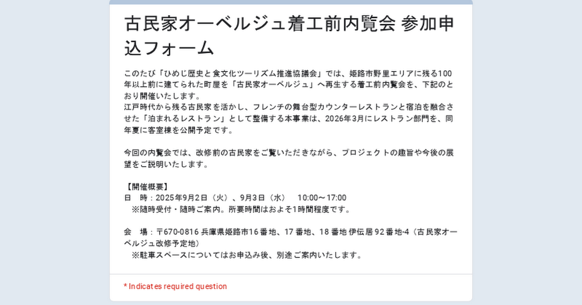 古民家オーベルジュ着工前内覧会 参加申込フォーム