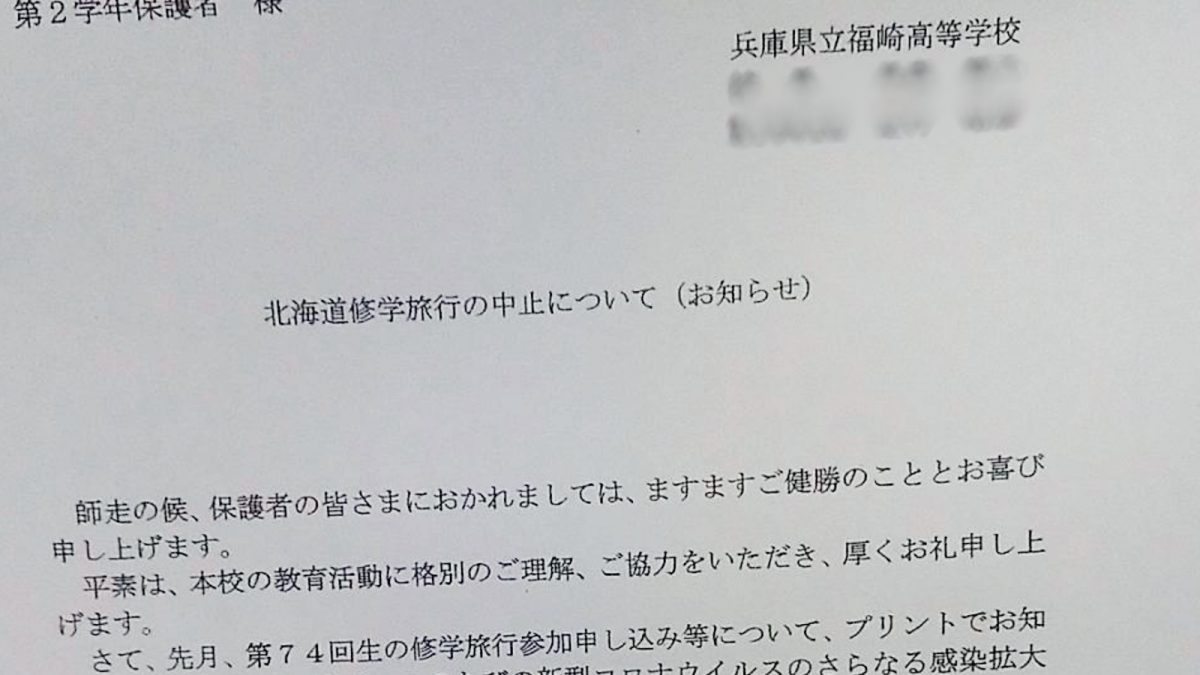12月7日、兵庫県福崎高等学校(福崎高校)は新型コロナウイルスのさらなる拡大を受け、2021年1月12日から北海道(トマムスキー場方面)へ予定していた第74回生の北海道修学旅行について中止とすることを決定しました。